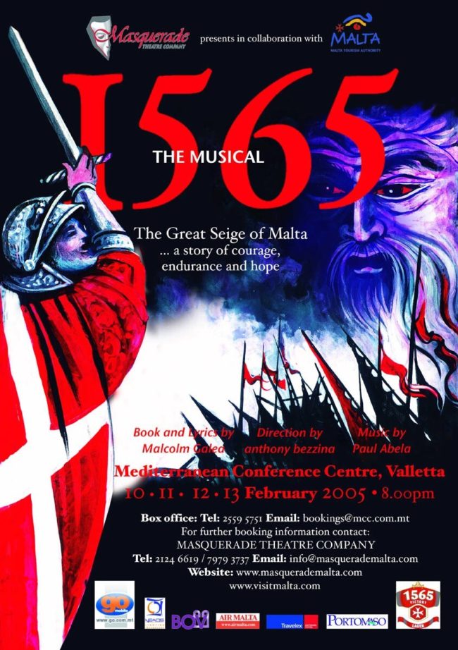 The music, for this daunting enterprise, has been composed by Paul Abela. He is one of our finest and most versatile musicians and composers, and has also written the music for a number of Malta’s Eurovision Song Contest entries. The book and lyrics of 1565 are the work of a young actor and writer Malcolm Galea, who was responsible for the pantomime, Cinderella. Masquerade has also taken no chances over the design of this mega-production. Sets are by ‘Oscar’ winning designer Peter Howitt and costumes by Ernest Camilleri.