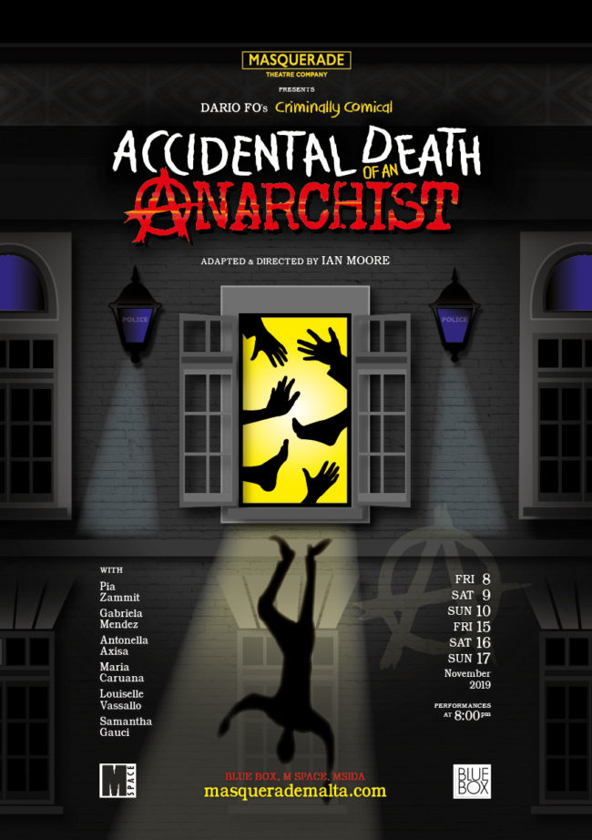 Masquerade re-opens the cold case of Guiseppe Pinelli with Accidental Death of an Anarchist, the explosive political farce by Nobel Prize-winning Italian playwright Dario Fo.
