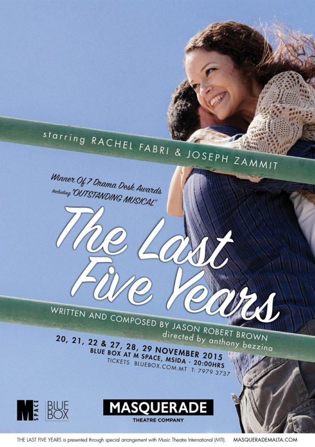 THE LAST FIVE YEARS is directed by anthony bezzina. Jonathan Ellul leads the live band of 6 musicians and Cathy Lawlor is the vocal coach. Set design is by Aldo Moretti.